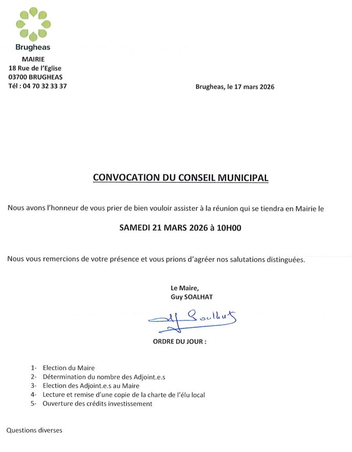 Convocation Conseil Municipal du 21 mars 2026 à 10h00.